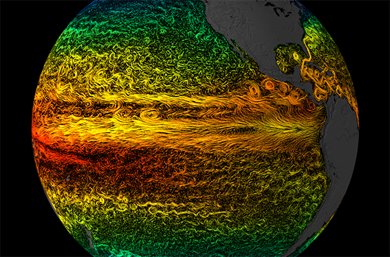 Foto: Reconstrucción de las corrientes globales superficiales a partir de lecturas de satélites y barcos.NASA/GODDARD SPACE FLIGHT CENTER SCIENTIFIC VISUALIZATION STUDIO.