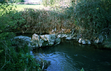 12.- PUENTE DE O RIAL La fisonomía del río Sar es parecida a la del tramo justo anterior, aunque se observa un bien conservado bosque galería. La erosionabilidad relativamente alta del suelo en esta zona podría deberse al terreno sedimentario, a la pendiente notable del último escalón desde la planicie de Santiago al valle de A Mahía, y al mayor caudal que supone recibir desde el anterior puente dos afluentes más: el Fontecova y el Porto Marelo. |